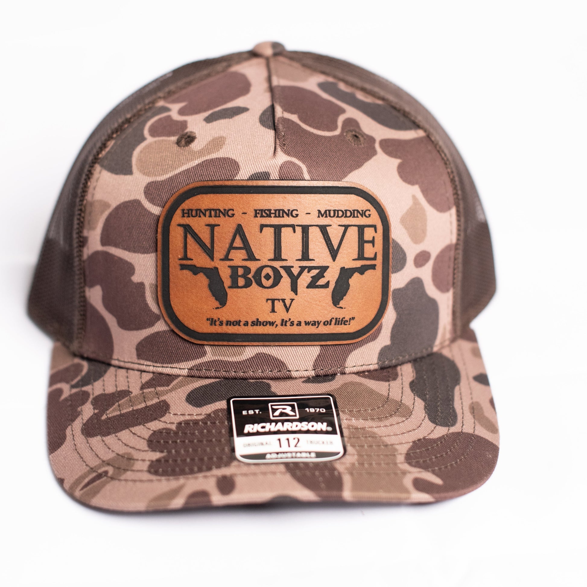 These hats feature a unique 2 Florida Flags design on the leather patch, with a duck camo dark brown mesh. Perfect for outdoor enthusiasts and those who appreciate a touch of nature in their accessories.