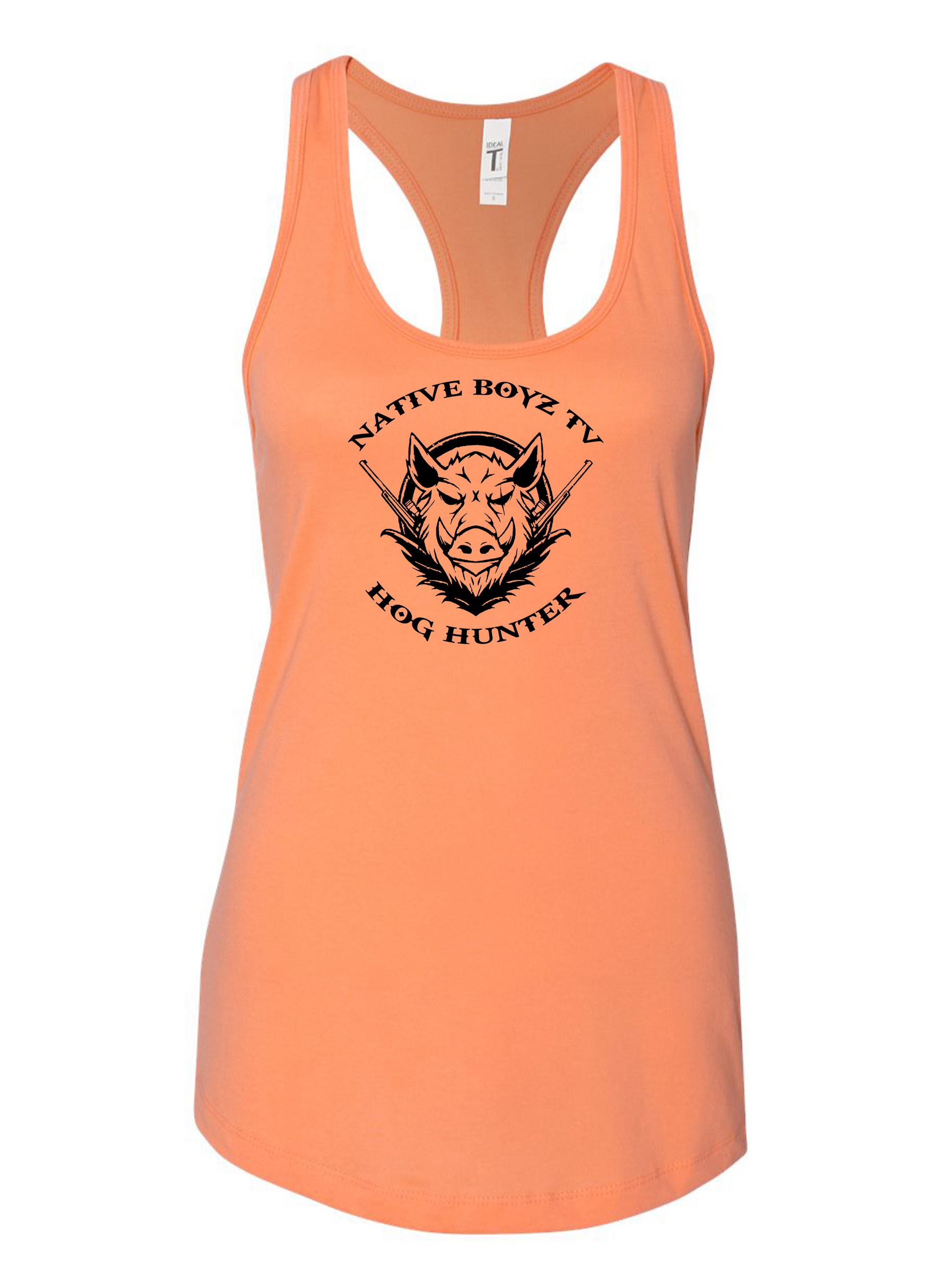 "Introducing NBTV's Hog Hunter Tank Top in light orange, designed for the fearless outdoorsman, blending style with functionality for those ready to tackle the wild with confidence and flair."